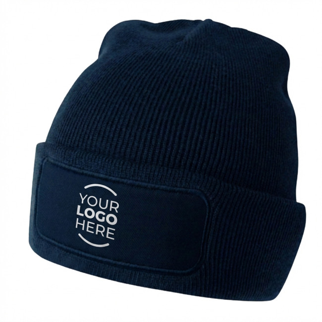 Cappello a berrettino realizzato in acrilico blu a doppia maglia, con particolare lavorazione a...