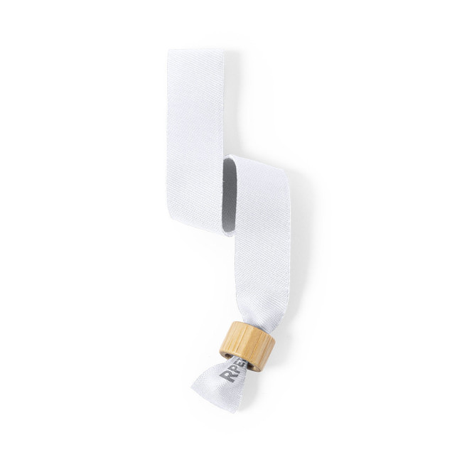 Braccialetto personalizzato in poliestere RPET con chiusura in bambù bianco
