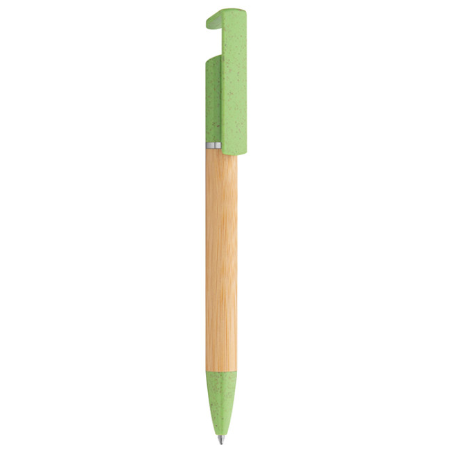 Penna a sfera personalizzabile corpo bamboo con supporto smartphone