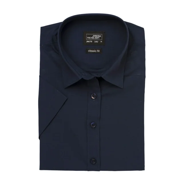 Camicia donna in popeline dal taglio moderno, realizzata con una miscela di 65% poliestere...