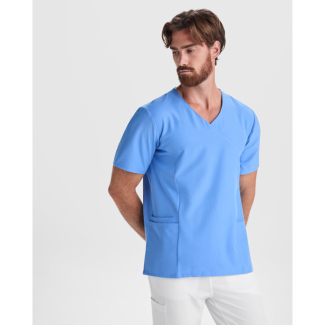 Casacca unisex a maniche corte ideale per ambienti professionali e sanitari. Presenta uno scollo...