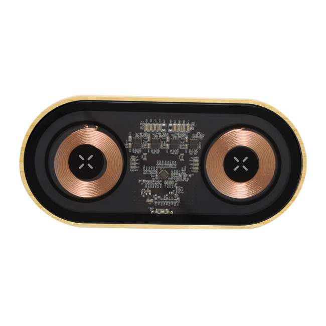 Caricatore organizer wireless da 15W in bambù, ideale per ricaricare smartphone compatibili con...