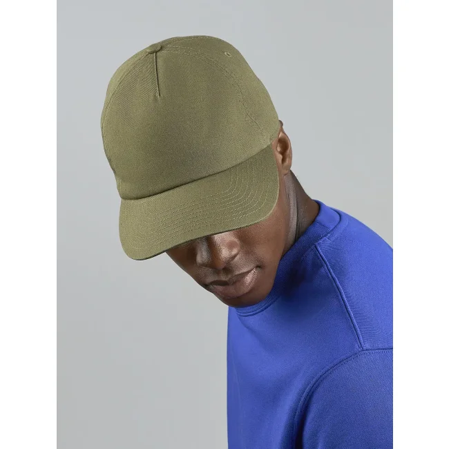 100% poliestere riciclato. Cappellino a 5 pannelli con frontali strutturati e visiera dal profilo...