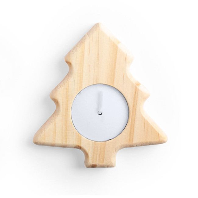 Candela natalizia personalizzata legno di pino con decorazioni stelle e alberi