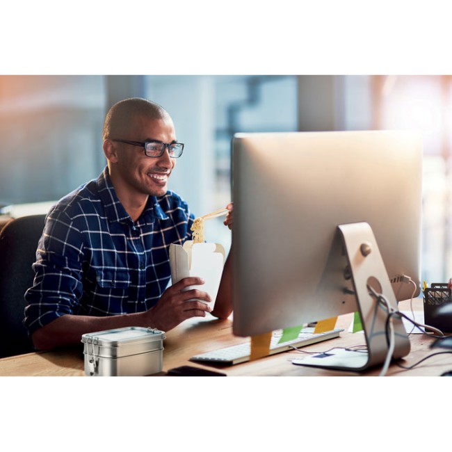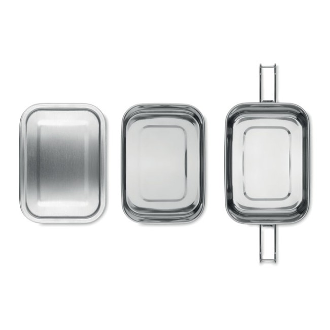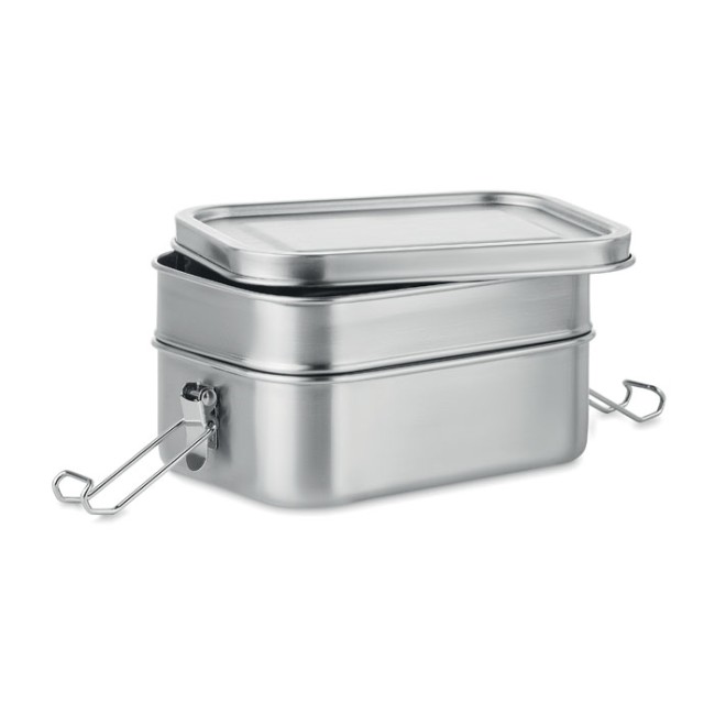 Portapranzo personalizzabile in acciaio inox con due scomparti e chiusure di sicurezza