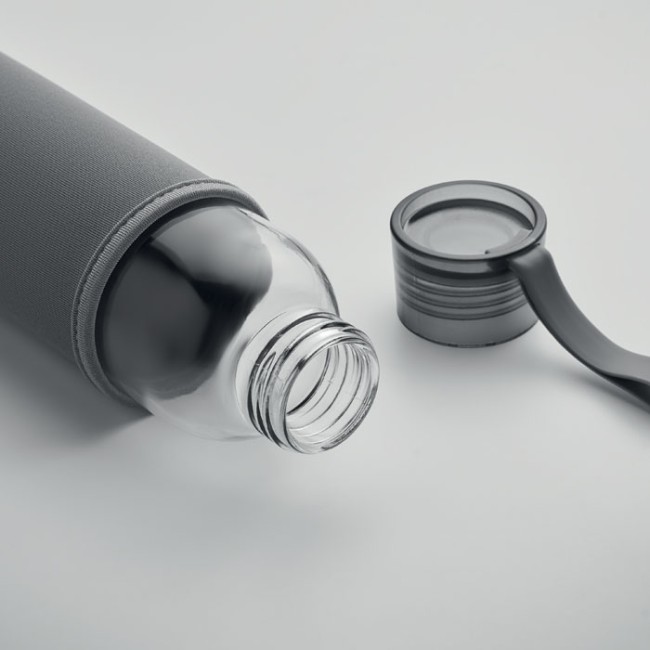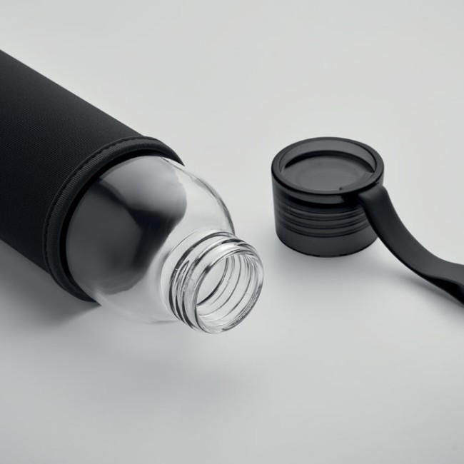 Bottiglia in vetro riciclato con custodia neoprene e coperchio antigoccia 500 ml