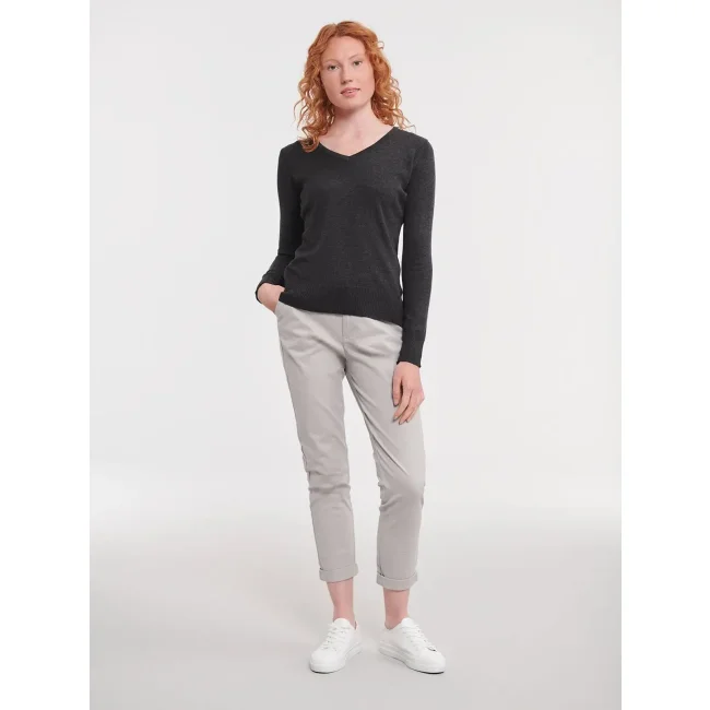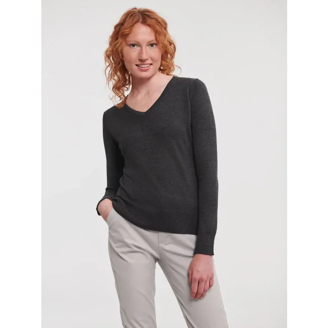 Maglione donna Russell con scollo a V e maniche a giro in cotone acrilico