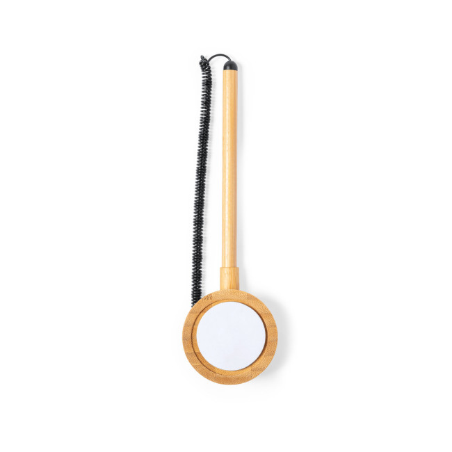 Penna personalizzabile in bambù con cordino estensibile e supporto adesivo