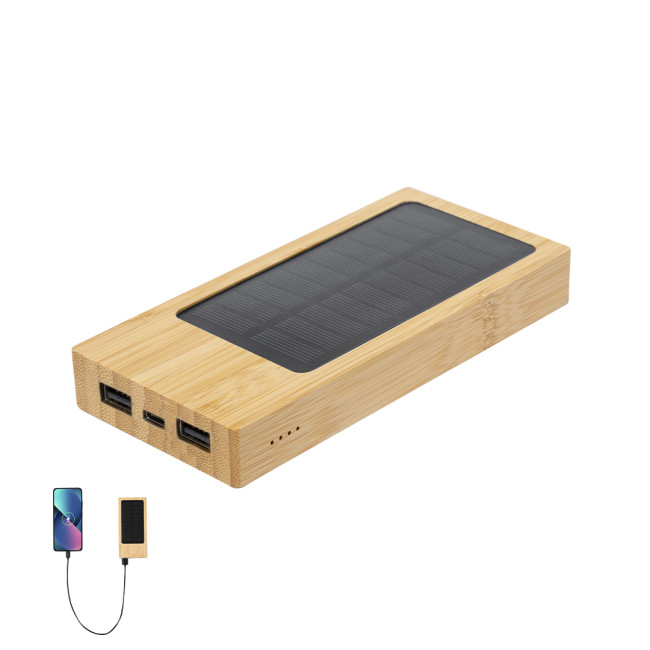 Batteria Ausiliaria Esterna personalizzabile in Bambù con ricarica solare 4000 mAh