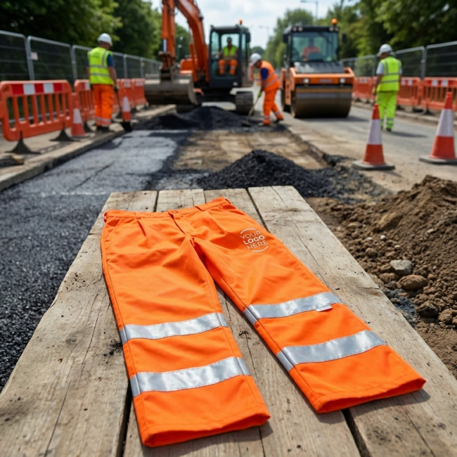 Pantaloni ad alta visibilità giallo fluorescente progettati per garantire sicurezza e comfort...