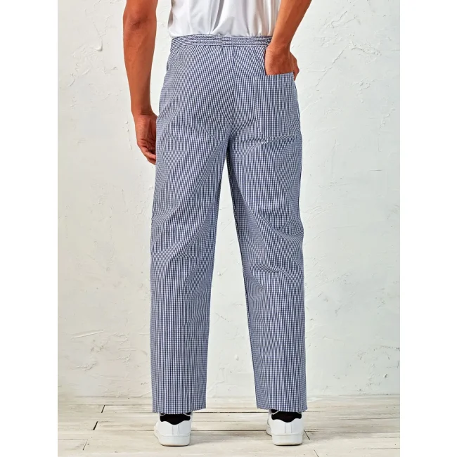 Questi pantaloni da chef unisex sono realizzati in tessuto 65% poliestere e 35% cotone easy care, resistenti e facili da lavare. Offrono comfort e praticità per chi lavora in cucina.