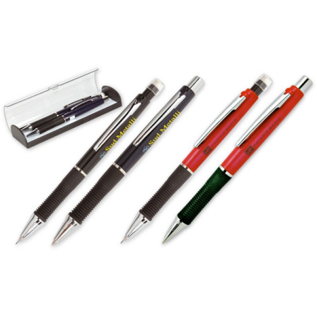 Parure penna sfera e matita personalizzabile con astuccio in plastica