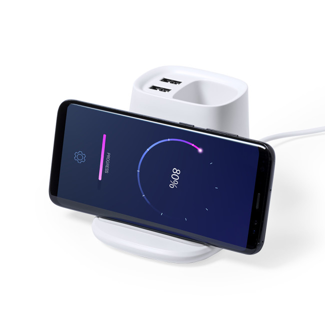 Penna multifunzione personalizzabile con caricabatterie wireless e porte USB