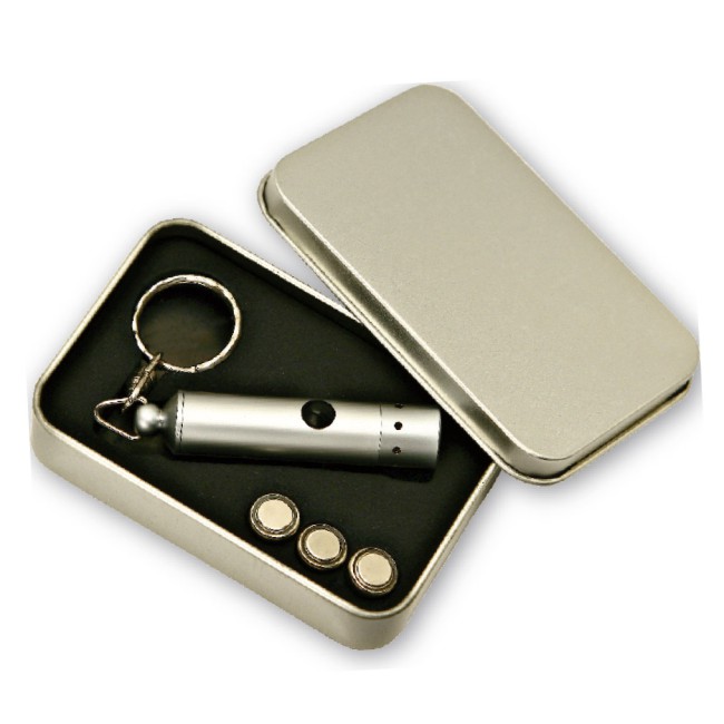 Portachiavi personalizzabile con luce astuccio in metallo e confezione