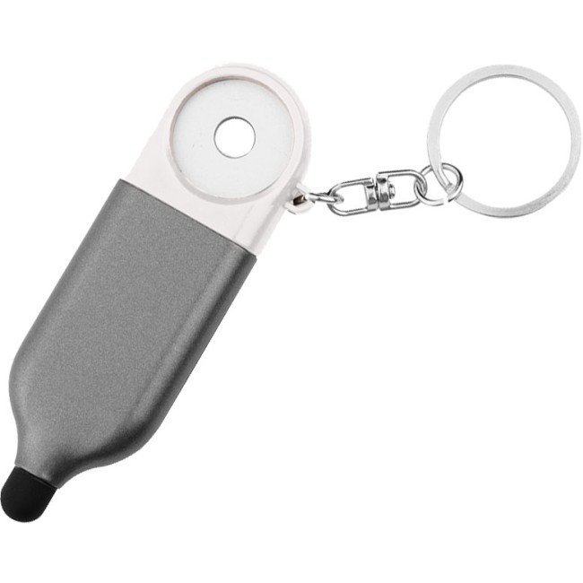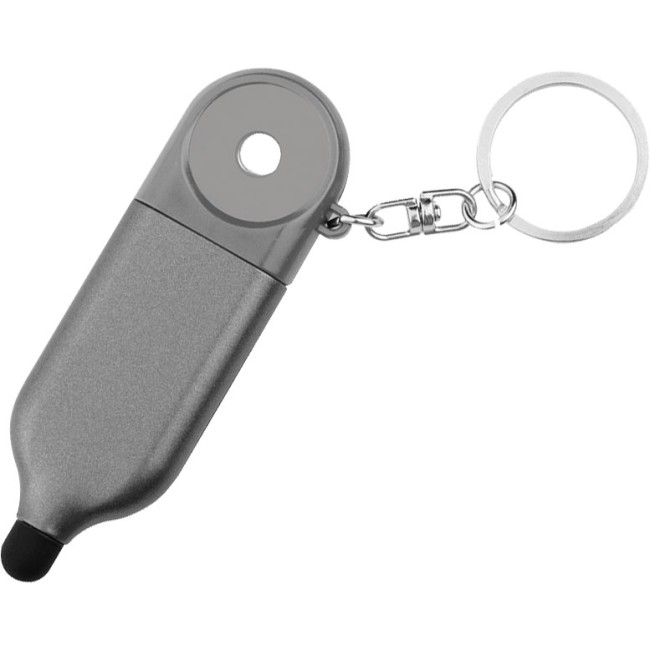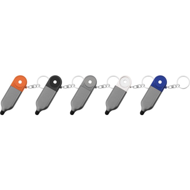 Portachiavi multifunzione personalizzabile con gettone e mini penna cromata