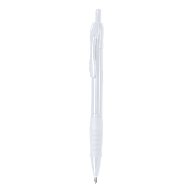 Penna a sfera a pulsante dal design casual bicolore con corpo bianco e clip disponibile in...