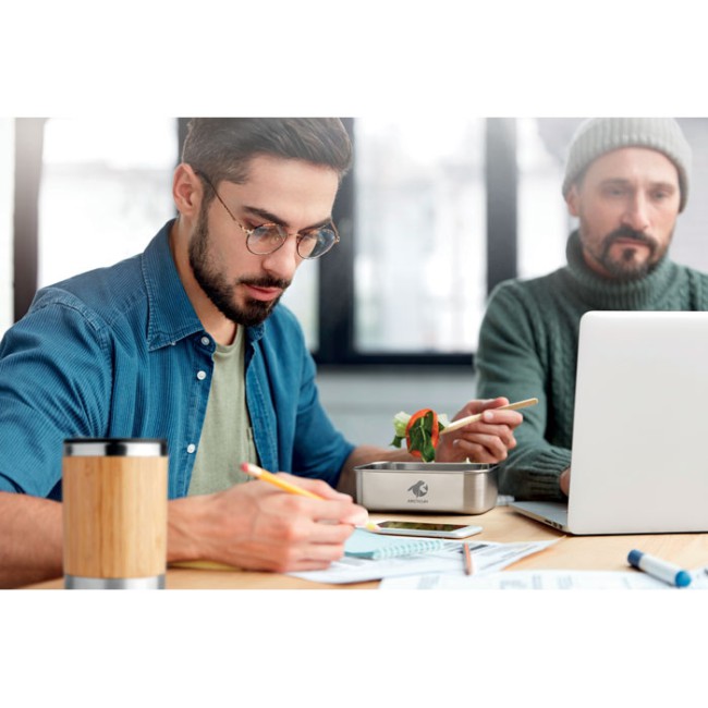 Portapranzo personalizzabile acciaio inox con coperchio bamboo e posate