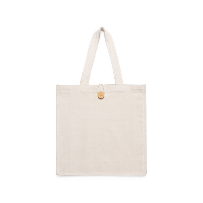 Borsa pratica e resistente con manici in legno dal design elegante, realizzata in 100% cotone con...