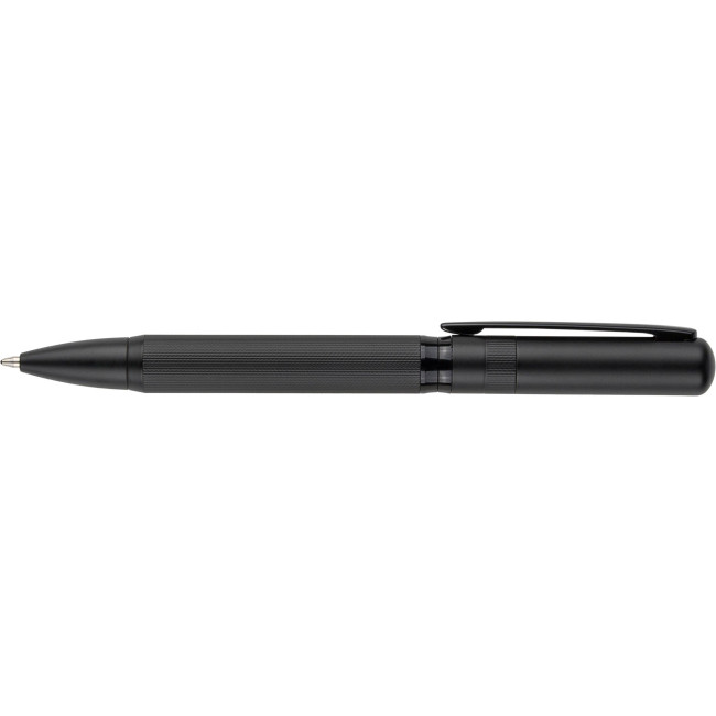 Penna sfera in alluminio colore nero con finiture cromate, progettata per un utilizzo quotidiano...