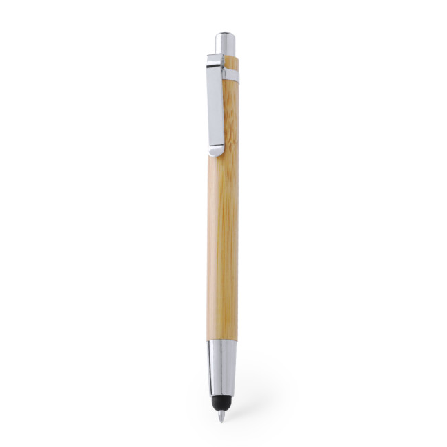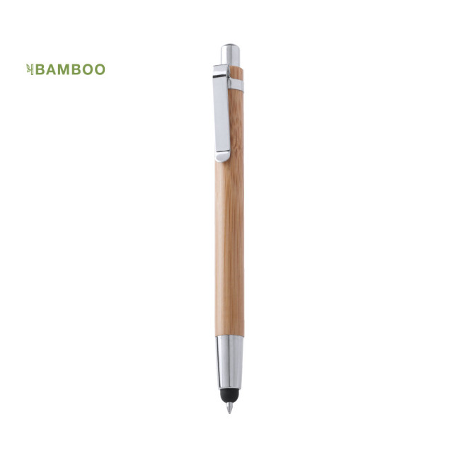 Penna touch personalizzabile in legno di bambù con finiture in argento