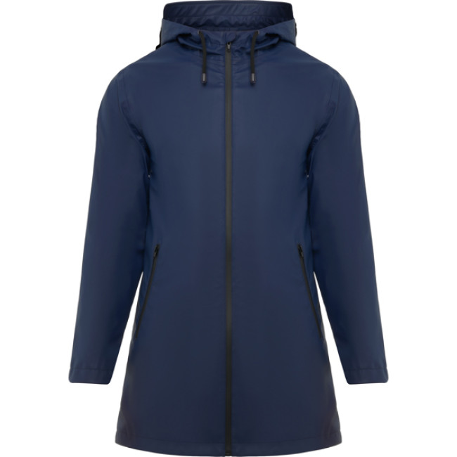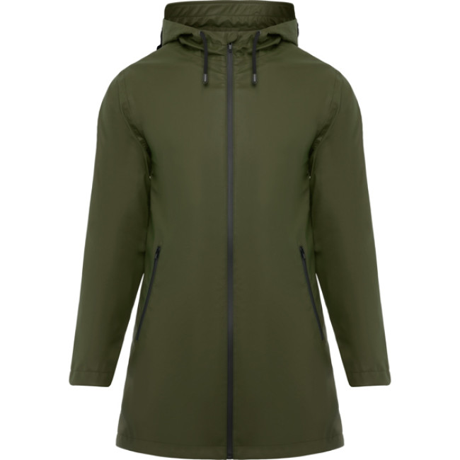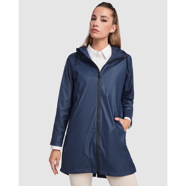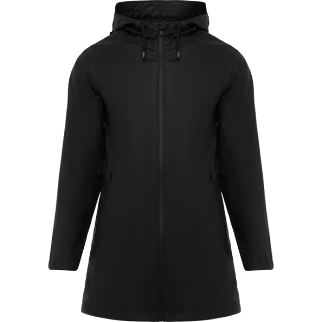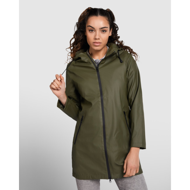 Giacca da pioggia personalizzabile donna con cappuccio fisso e dettagli neri