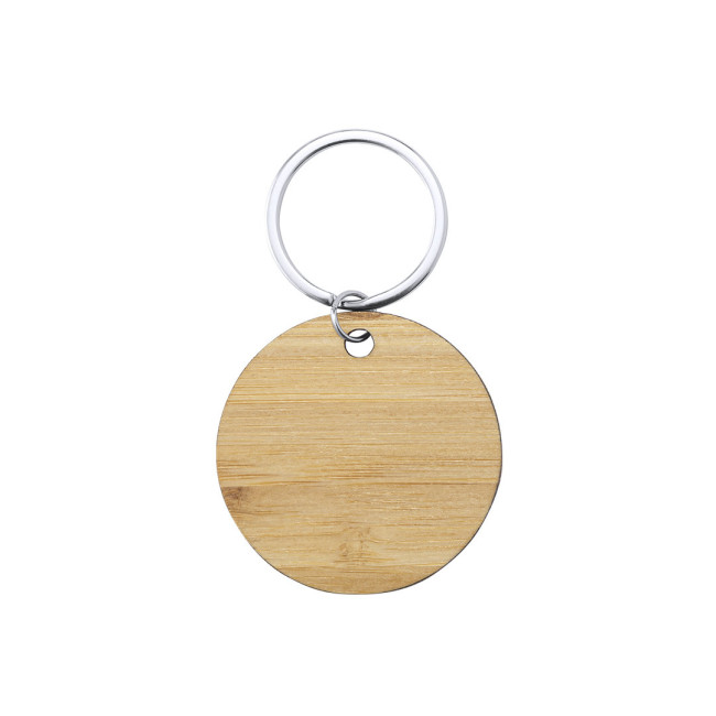 Portachiavi rotondo realizzato in lega di zinco con frontale in bamboo naturale, ideale per unire...