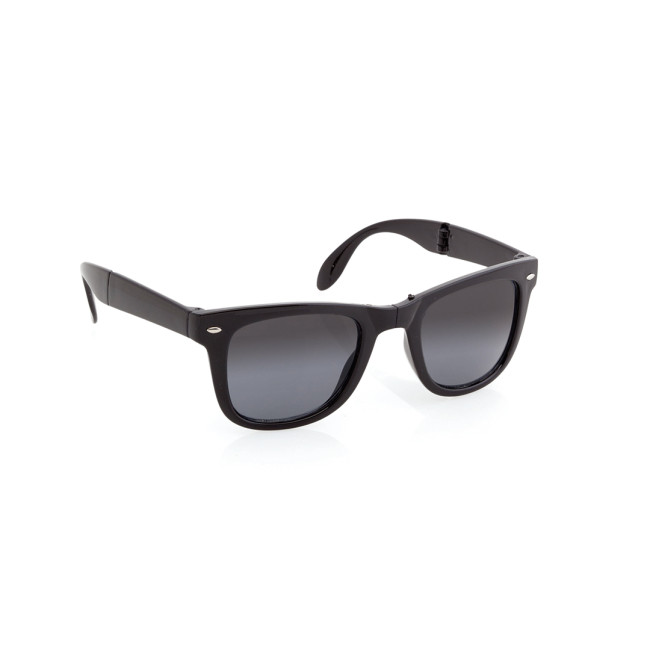 Occhiali da sole in plastica caratterizzati da una montatura nera abbinata a stanghette e parte...