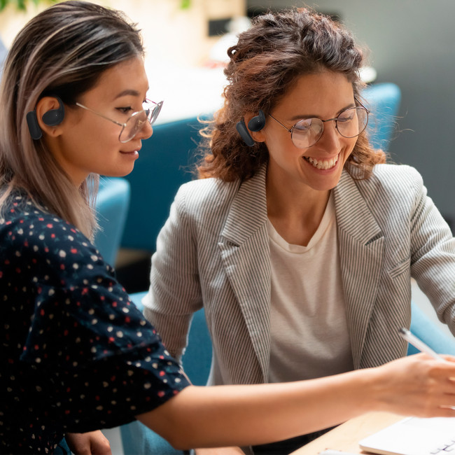 Auricolari di traduzione personalizzabili con Bluetooth e doppio orecchio