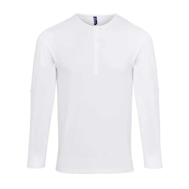T-shirt a maniche lunghe personalizzabile Premier collo tondo con bottoni